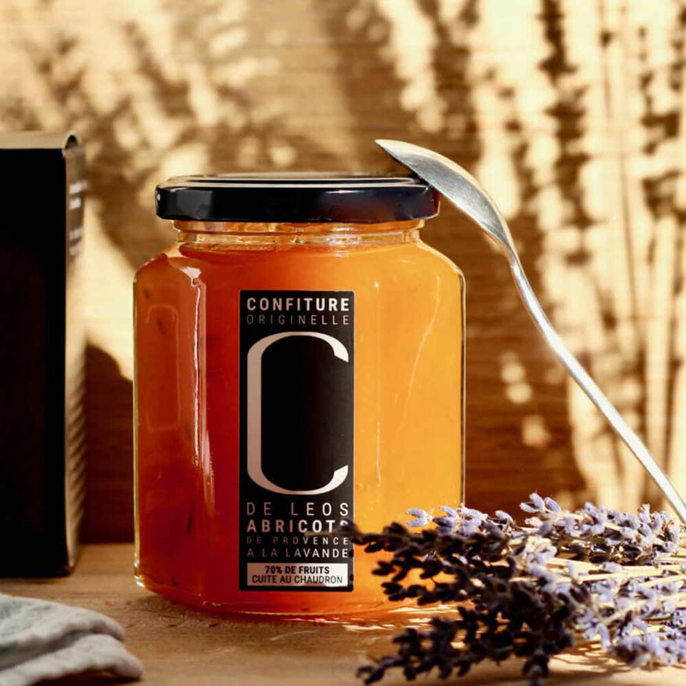 Cette confiture artisanale, cuite au chaudron, se distingue par sa forte teneur en abricots et par le goût unique et singulier de son mariage réussi avec la lavande du DOMAINE DE LEOS.