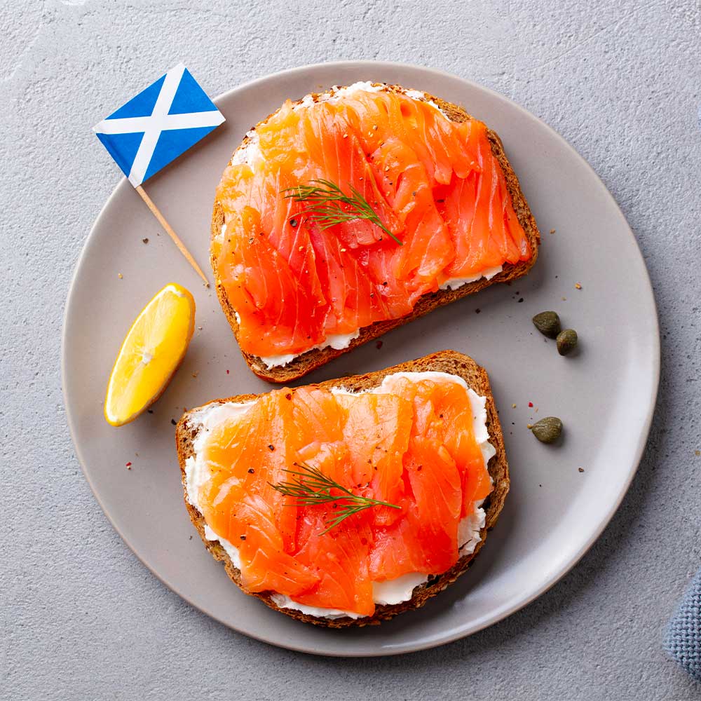 Savourez l’excellence de notre saumon fumé Écossais, élevé dans les eaux cristallines des Highlands.